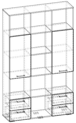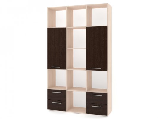 Применение задней стенки из ЛДСП (в ячейках с ящиками и фасадами) позволяет использовать данный стеллаж для зонирования пространства (чтобы предотвратить опрокидывание, необходимо обеспечить крепление стеллажа к стене).