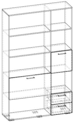 Применение задней стенки из ЛДСП (в ячейках с ящиками и фасадами) позволяет использовать данный стеллаж для зонирования пространства (чтобы предотвратить опрокидывание, необходимо обеспечить крепление стеллажа к стене).